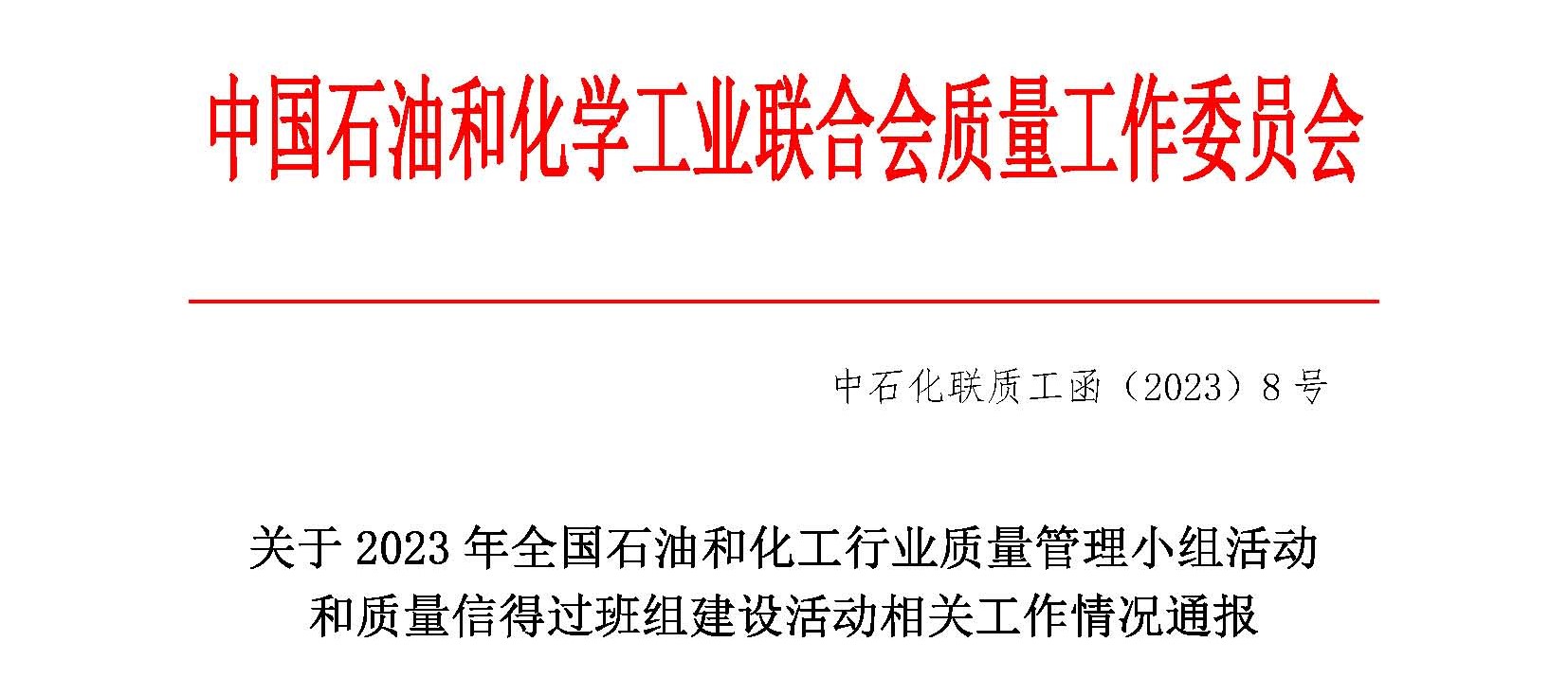 根据中国石油和化学工业联合会《关于做好2023年全国石油和化工行业群众性质量管理活动的通知》(中石化联质发(2023)43号)有关安排,我们组织完成了2023年全国石油和化工行业质量管理小组活动和质量信得过班组建设活动成果的登记备案、申报评审、发表交流和大会表彰等工作,现将有关情况通报如下: